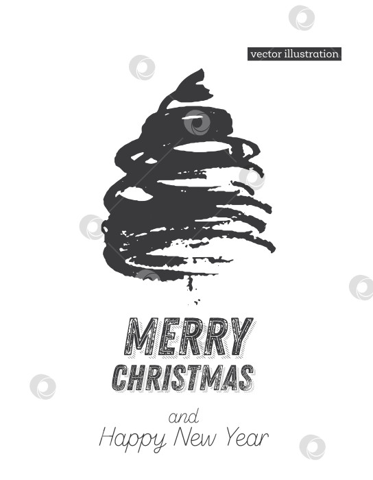 Эскиз Рождественской елки, выделенный на белом фоне. счастливого Рождества. векторная иллюстрация. Силуэт нарисованной от руки ели.