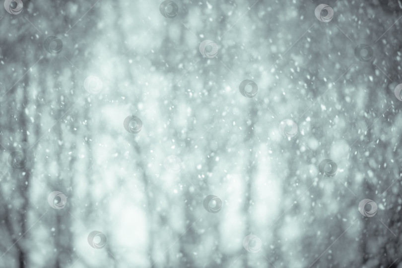 Зимний размытый фон с движущимися снежинками. Тонированный снимок