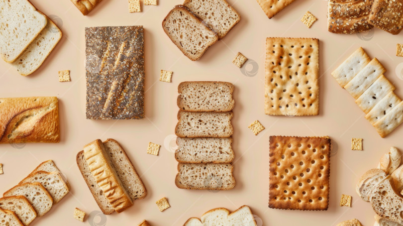 Ассортимент диетического хлеба, включая батон с семенами на нейтральном фоне, созданный искусственным интеллектом