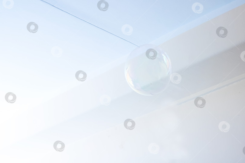 Красивый мыльный пузырь плавно парит в воздухе на фоне ярко-голубого неба, создавая восхитительное атмосферное явление