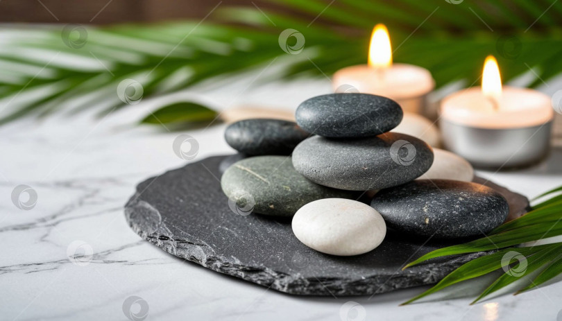 Предметы для спа-салона на мраморном столе. Создан искусственный интеллект.