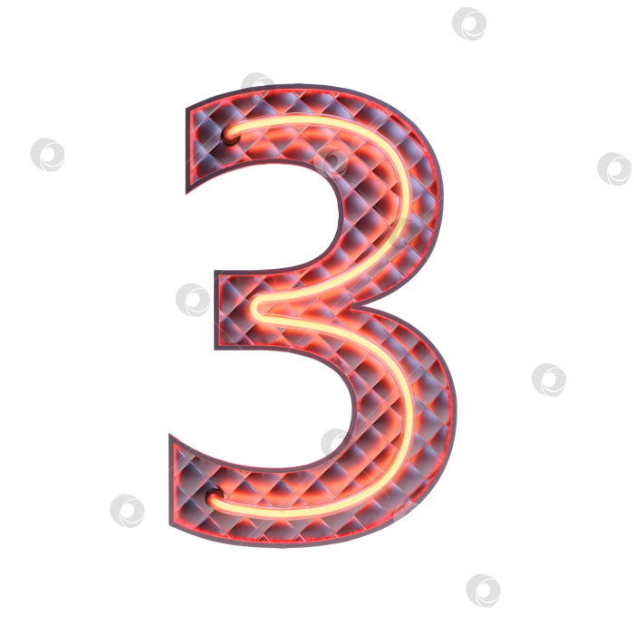 Цифра 3, алфавит. Неоновая ретро-3d цифра, выделенная на черном фоне контуром отсечения. 3d-иллюстрация.