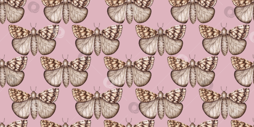 Серо-коричневая бабочка с расправленными крыльями, акварельная иллюстрация. Чешуекрылое насекомое, выделенное на розовом фоне. Рисунок идеально подходит для текстиля, обоев, оберточной бумаги.