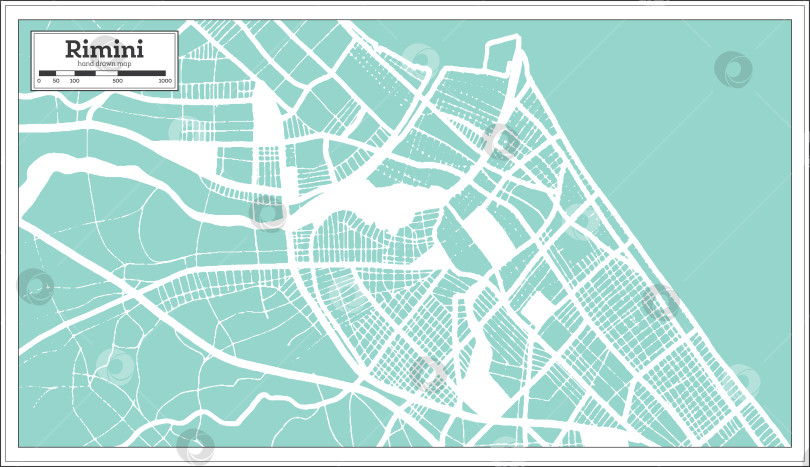 Карта города Римини, Италия, выполненная в стиле ретро. Схематическая карта. векторная иллюстрация.