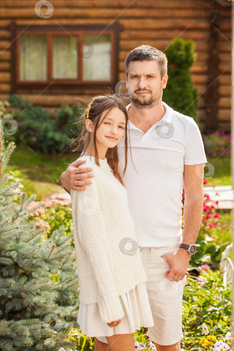 Портрет отца и дочери-подростка, лето на открытом воздухе