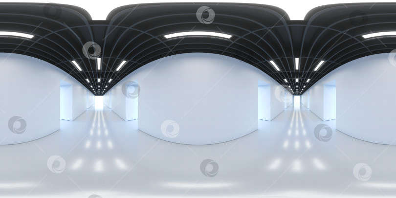 HDRI. Интерьер. Полная сферическая панорама пустого зала на 360 градусов. Декорации для выставок и мероприятий. Маркетинговый макет. 3D-рендеринг-иллюстрация.