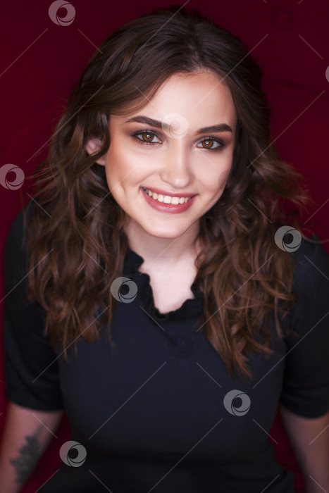 Сделай макияж красавице. Красивая брюнетка-фотомодель крупным планом на студийном портрете