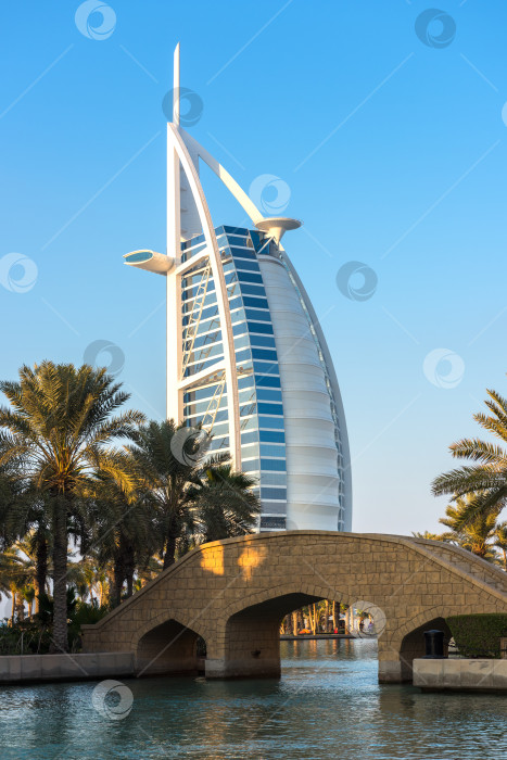 ОАЭ, ДУБАЙ - 28 декабря: Здание отеля Burj Al Arab в Мадинат Джумейра, Дубай, Объединенные Арабские Эмираты, 28 декабря 2014 года.