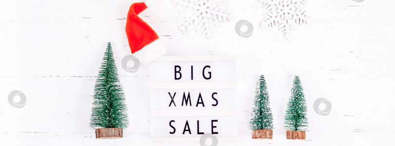 Большая рождественская распродажа текстовый лайтбокс на белом фоне