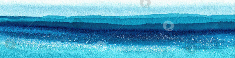 Акварельная иллюстрация, изображающая спокойные океанские волны в различных синих тонах, демонстрирует гладкие текстуры и умиротворяющую атмосферу, идеально подходящую для творческих проектов.