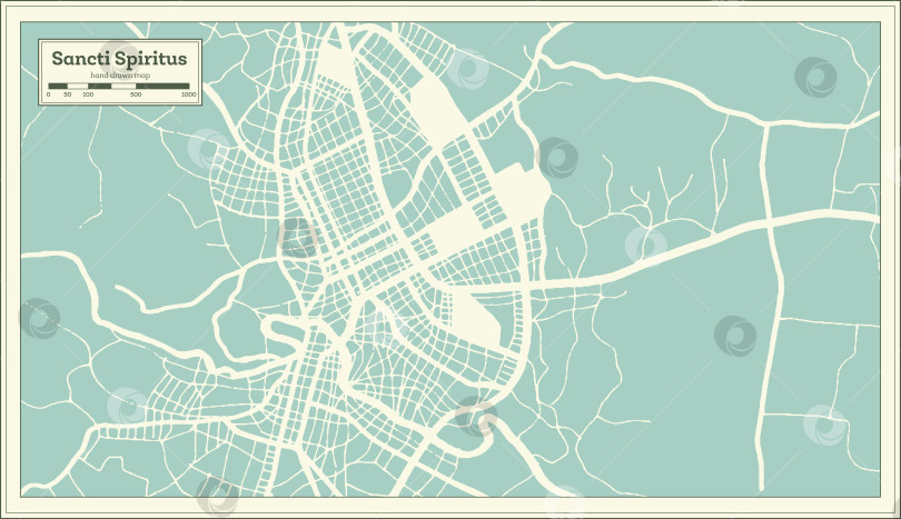 Карта города Санкти-Спиритус на Кубе, выполненная в ретро-стиле. Схематическая карта. векторная иллюстрация.
