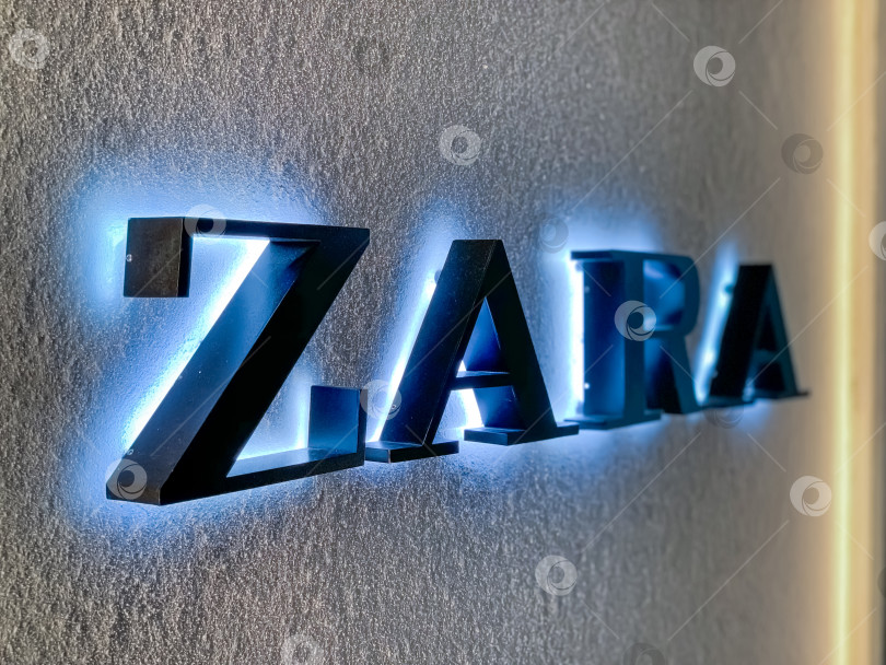 Магазин ZARA международной сети розничных магазинов модной одежды с логотипом бренда, расположенный в торговом центре Bialystok, Польша. Фото с мобильного. Белосток, Польша - 16 февраля 2020 г.