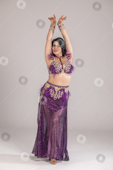 Портрет молодой привлекательной брюнетки в костюме для восточных танцев