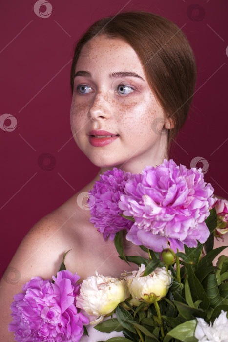 Портрет молодой красивой рыжеволосой девушки крупным планом. Красотка-модель с макияжем