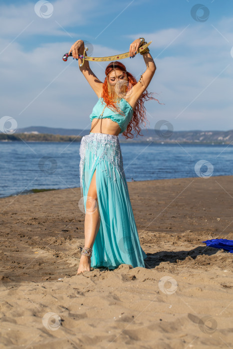 Молодая сексуальная женщина позирует в костюме для восточных танцев