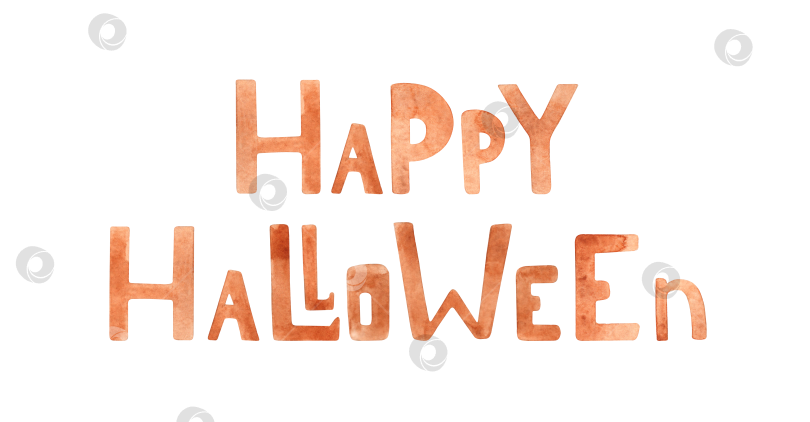 Акварельная иллюстрация коричневого текста на Хэллоуин. Надписи на Хэллоуин выделяются на фоне. Концепция дизайна надписей, плакатов, открыток, баннеров, одежды, обоев, оберточной бумаги, упаковки, почтовых открыток