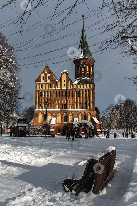 Калининград, Калининградская область, Россия, 16 февраля 2025 года Собор на острове Канта зимой