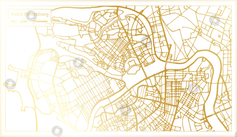 Карта города Санкт-Петербург, Россия, выполнена в золотистом цвете в стиле ретро. Контурная карта. векторная иллюстрация.