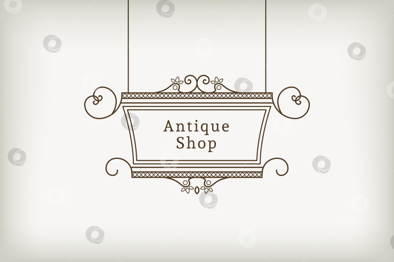 Винтажная вывеска для наружной рекламы антикварного магазина. Векторный дизайн в стиле ретро lineart