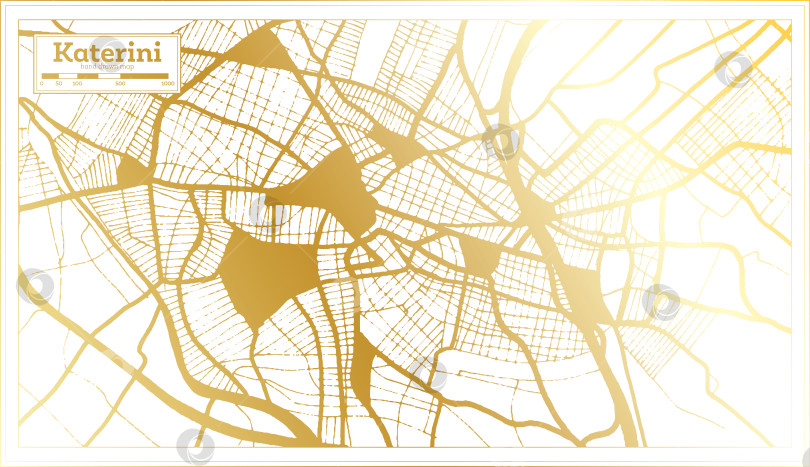 Карта города Катерини, Греция, выполнена в золотистом цвете в ретро-стиле. Схематическая карта. векторная иллюстрация.