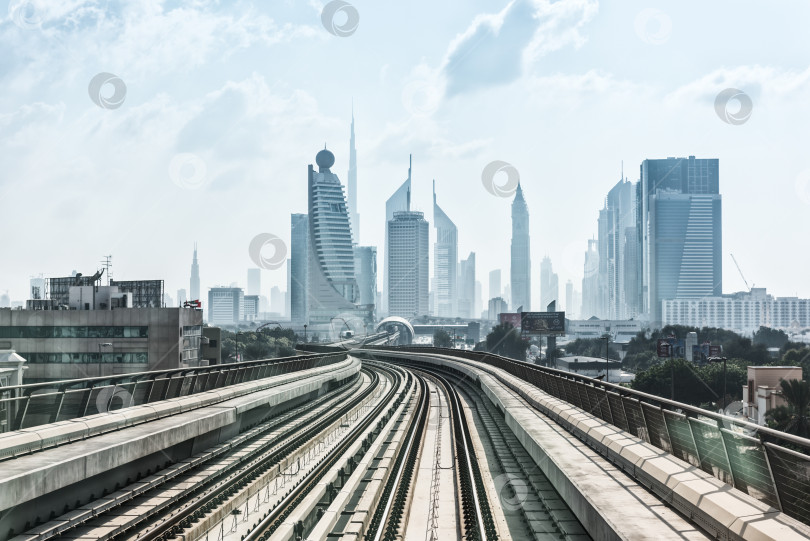 ОАЭ, ДУБАЙ - 31 декабря: вид на подземную дорогу в центре Дубая. Объединенные Арабские Эмираты, 31 декабря 2014 г.