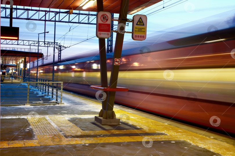 Москва, Россия. 01.25.2019. Нижегородская - остановочный пункт, пассажирская платформа Малого кольца Московской железной дороги. Движение поездов в вечернее время