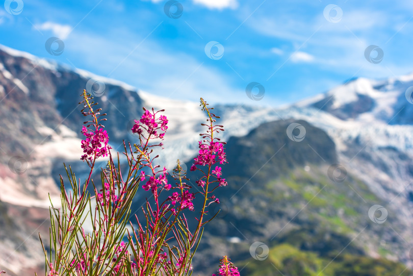 Швейцарские горы летом с дикими розовыми цветами на переднем плане